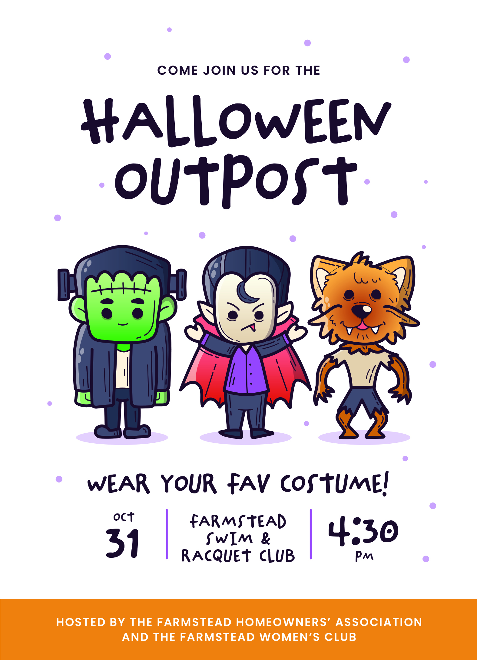 The Farmstead HOA and the Farmstead Women’s Club are pleased to host the beloved Halloween Outpost starting on Halloween night at 4:30 pm. Come on out to socialize and sip hot chocolate with other families of Farmstead. Kids will enjoy a fire truck visit from our local fire department starting at 4:30 pm and lasting approximately 20-30 minutes (as long as they are not needed for an emergency.)